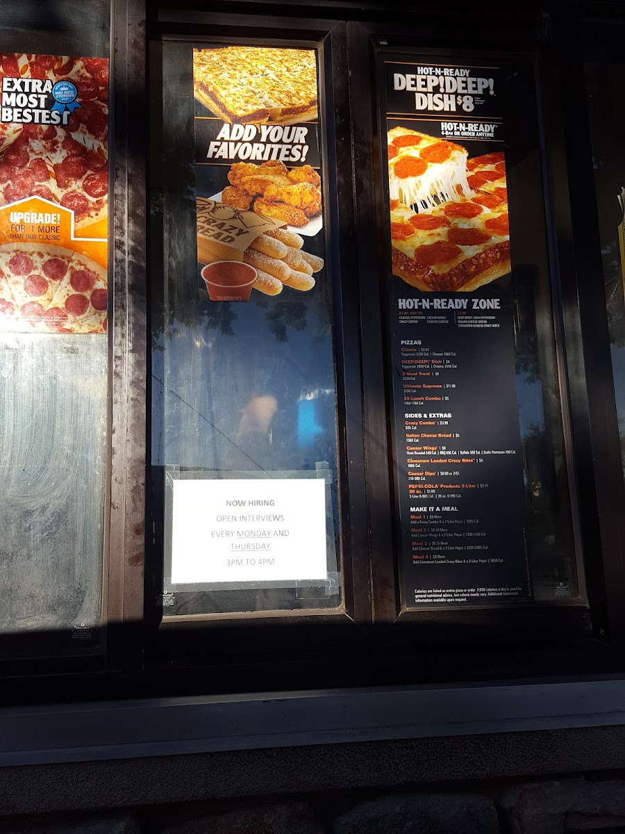 CRAZY!CRAZY!™ AMOUNTS OF TOPPINGS AT THE NATION'S BEST PRICE** Large round pizza with Pepperoni, Sausage and Bacon (2760 Cal)